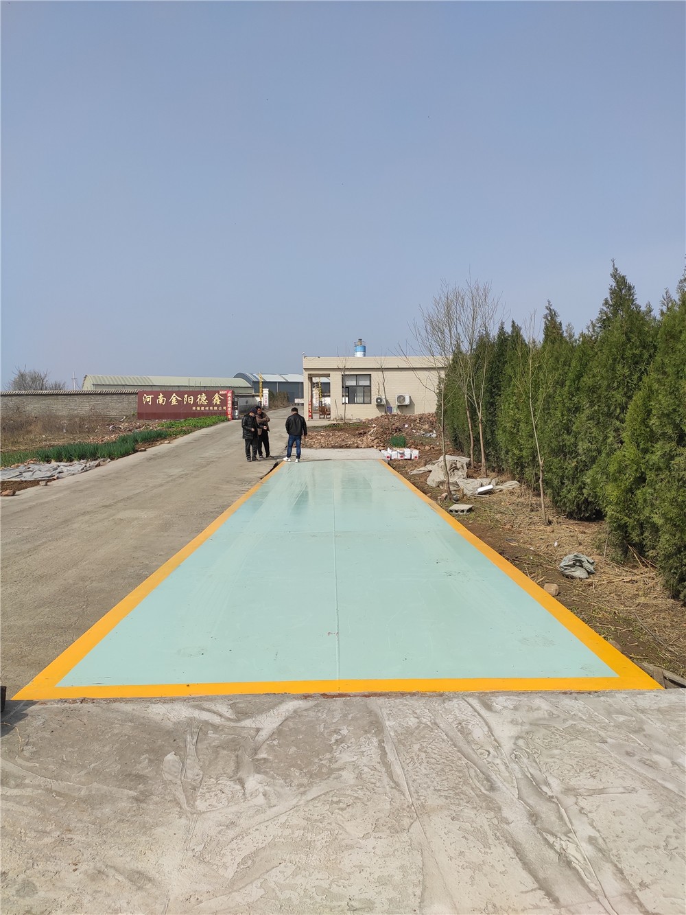 采購背景:河南金陽德鑫環(huán)保建材有限公司位于汝州市汝南工業(yè)區(qū)袁莊村南,主營環(huán)保磚、建材的批發(fā)零售;環(huán)保磚生產(chǎn);水泥制品的生產(chǎn)加工銷售。由于廠區(qū)內(nèi)有大量原材料及產(chǎn)成品進出廠需要計量稱重,經(jīng)廠區(qū)考察后,訂購了中原恒瑞地磅廠3x18m定額150噸電子汽車衡,現(xiàn)電子汽車衡已安裝完成并投入使用。