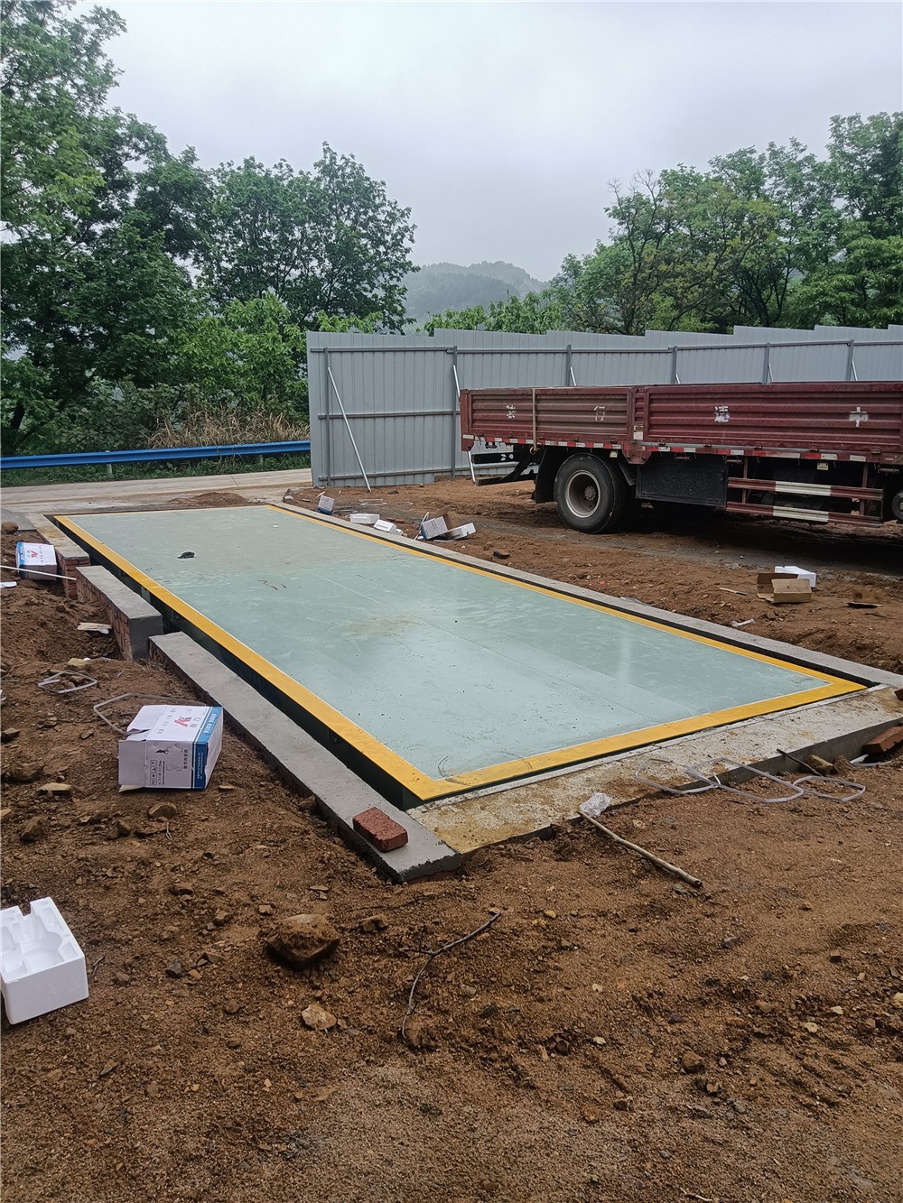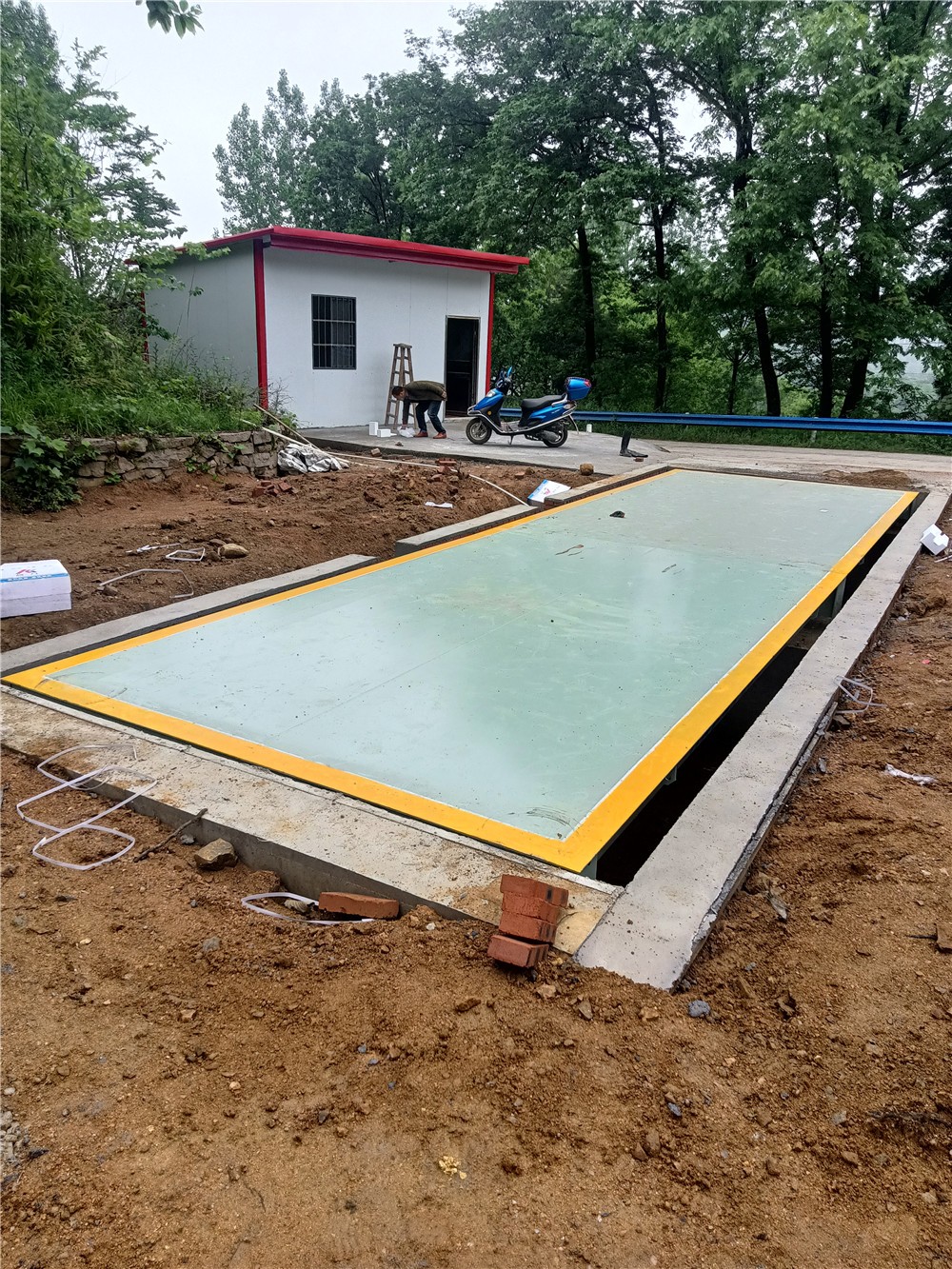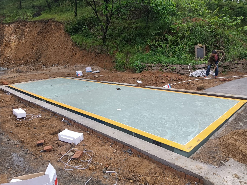 信陽(yáng)商城伏山鄉(xiāng)河沙廠100噸地磅施工案例