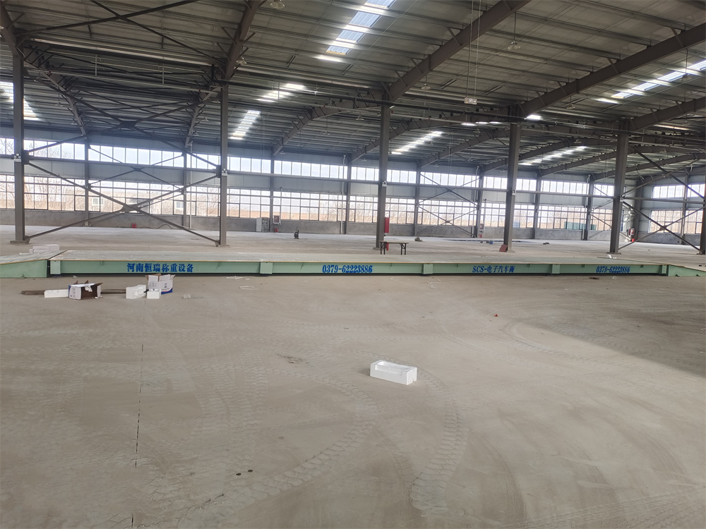 采購背景:河南省株豐農(nóng)業(yè)科技有限公司,主營農(nóng)業(yè)技術開發(fā)、技術咨詢、技術推廣、技術轉讓;農(nóng)作物種植;銷售:花卉、水果、蔬菜、化肥、農(nóng)業(yè)機械及配件、其他化工產(chǎn)品;生物肥料、水溶肥料、摻混肥料的生產(chǎn)及銷售等。廠區(qū)內購進原材料及銷售產(chǎn)品需要稱重計量,故訂購了一臺中原恒瑞地磅廠3x18m定額100噸數(shù)字汽車衡(汽車衡由4節(jié)3x4.5m秤臺搭接組成,配備了恒瑞HR-DZ-30T數(shù)字傳感器,恒瑞HR-D3+數(shù)字儀表,整磅數(shù)字信號傳輸,防作弊,穩(wěn)定性強),客戶計劃將汽車衡安裝于室內,同時為了使汽車衡盡快投入到生產(chǎn)使用中,加購了2臺3x3m鋼制跑道,現(xiàn)汽車衡已安裝完成并投入使用