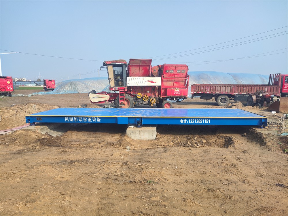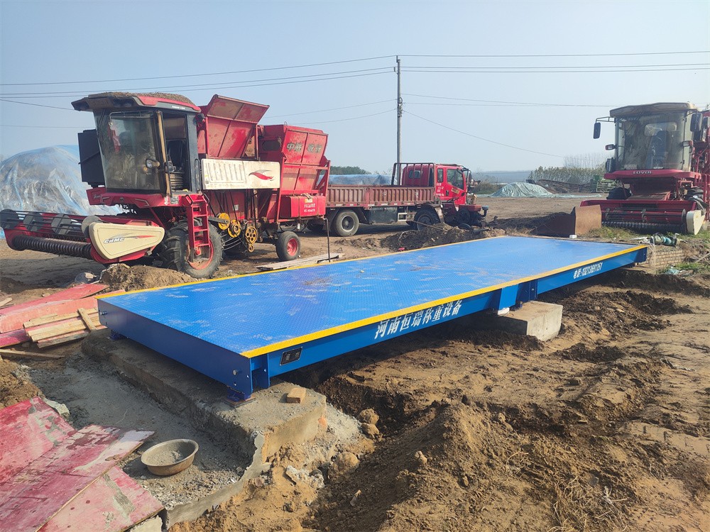 采購背景:周口西華縣東胡莊草料場,訂購了河南恒瑞地磅廠3x9m定額60噸的電子地磅,主要用于收購秸稈、花生秧等草料。地磅由2節(jié)3x4.5m秤臺搭接組成,整秤底部由5道300mmU型梁貫穿整體,秤臺面板厚8mm,秤體全自動焊接,秤臺冷彎成型,結實、穩(wěn)固、耐用。電器部分配備了HR-DZ-40T稱重傳感器,穩(wěn)定性強,HR-D3+稱重儀表一臺,電子地磅整體準確度高,誤差小,穩(wěn)定性強。目前地磅已安裝完成并交付使用。