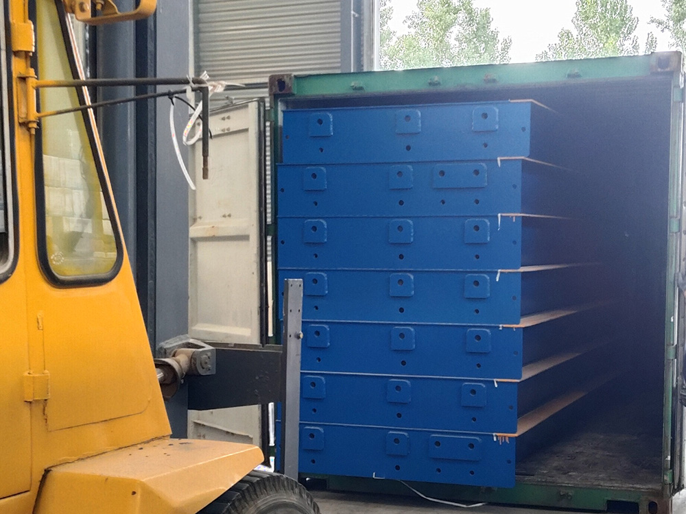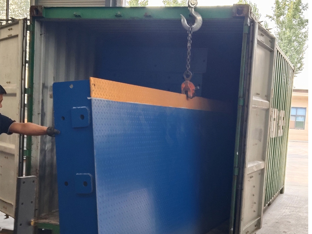 采購背景  新鄉(xiāng)迪科瑪機械有限公司由于出口肯尼亞訂單需求委托恒瑞稱重生產(chǎn)加工一臺寬3米,長18米,定額100噸分體式數(shù)字汽車衡。此地磅采用安鋼Q235B材質(zhì)加厚中板,采用四節(jié)八塊分體式組合結(jié)構(gòu),便于出口貿(mào)易集裝箱運輸。同時配備柯力出口型數(shù)字傳感器,柯力20008出口型英文數(shù)字儀表,此批分體秤已順利交貨裝車,完成交付。